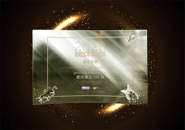 康姿百德榮獲最佳雇主百強企業(yè)獎章