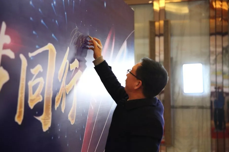 李總在簽名墻前簽名