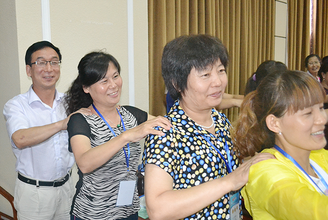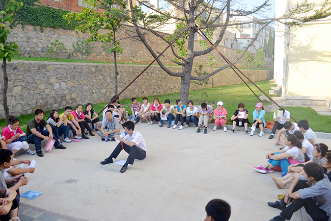 參訓人員席地而坐,討論工作中存在的問題