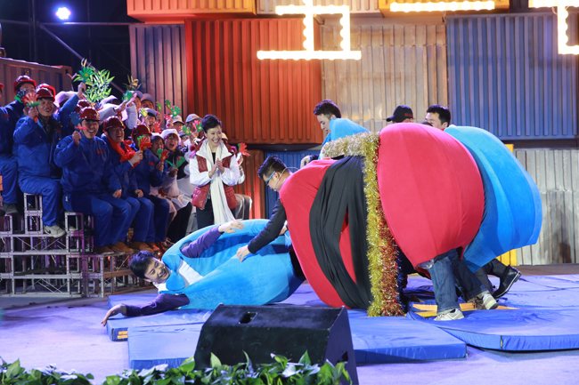 嘉賓穿著特制“菜心服”,游戲玩的不亦樂(lè)乎