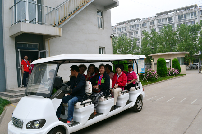 消費(fèi)者代表乘觀光車(chē)參觀康姿百德科技園