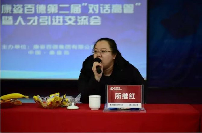 康姿百德集團(tuán)人力資源中心總經(jīng)理劉婷在交流會(huì)上發(fā)言