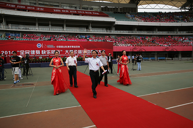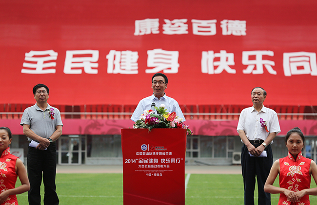 9月16日,秦皇島奧體中心體育場(chǎng)人潮如海、彩旗招展,中國(guó)登山隊(duì)攜手康姿百德2014“全民健身快樂(lè)同行”大型公益活動(dòng)表彰大會(huì)在這里盛大舉行。來(lái)自全國(guó)30個(gè)省、市、區(qū)的約15000名健身愛(ài)好者和康姿百德公司新老朋友,滿(mǎn)懷激情地舞動(dòng)康姿百德健身操,倡導(dǎo)“每天鍛煉一小時(shí)、健康生活一輩子”的健康生活理念,熱烈慶??底税俚鹿境闪?0周年。