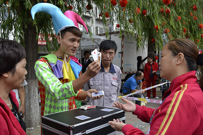 9月18日,是康姿百德公司十周年慶典參觀活動的第二天,前來參觀科技園的各地朋友絡(luò)繹不絕、熱情不減。參觀完科技展廳和制造中心,大家爭相與“福、祿、壽、財”卡通精靈和十周年慶典大型絹花景觀合影,期待把最燦爛的笑容留在康姿百德。由公司員工表演的精彩紛呈的魔術(shù),看得大家瞠目結(jié)舌、翹指贊賞,一些熱心的朋友還拉起魔術(shù)師的手要求講出其中的奧秘。在“神秘雕像”前,表演者一動不動的神奇“騰空術(shù)”引得許多朋友駐足圍觀,大家?guī)缀跬浟颂鞖獾难谉幔粫绨绻砟?,一會講講笑話,直至逗玩得“雕像”露出笑容,大家也跟著哈哈大笑起來,歡樂的笑聲給康姿百德科技園增添了不少喜慶祥和。