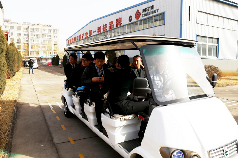 到訪嘉賓乘坐參觀車參觀康姿百德制造中心生產(chǎn)線