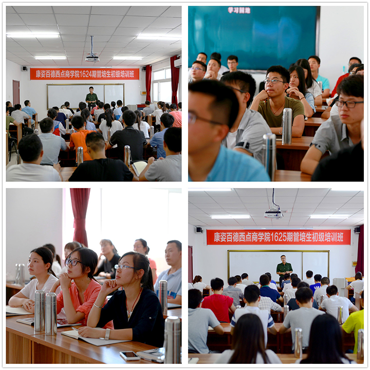 康姿百德西點商學院是為公司培養(yǎng)優(yōu)秀管理人才的搖籃,“鑄就堅毅品格,塑造將軍搖籃”是康姿百德西點商學院的精神所在。培訓學習期間,康姿百德西點商學院將會用系統(tǒng)化的學習課程、嚴格的培訓紀律以及科學化的培訓體系幫助學員迅速提升。同時,包括公司董事長在內(nèi)的高管也會參與授課,幫助發(fā)掘、培養(yǎng)學員領(lǐng)導力。經(jīng)過西點商學院科學而又嚴謹?shù)呐嘤?,這些剛剛?cè)肼毜墓芘嗌鷤儠焖俚赝懽兂砷L,成為優(yōu)秀的職場新秀。