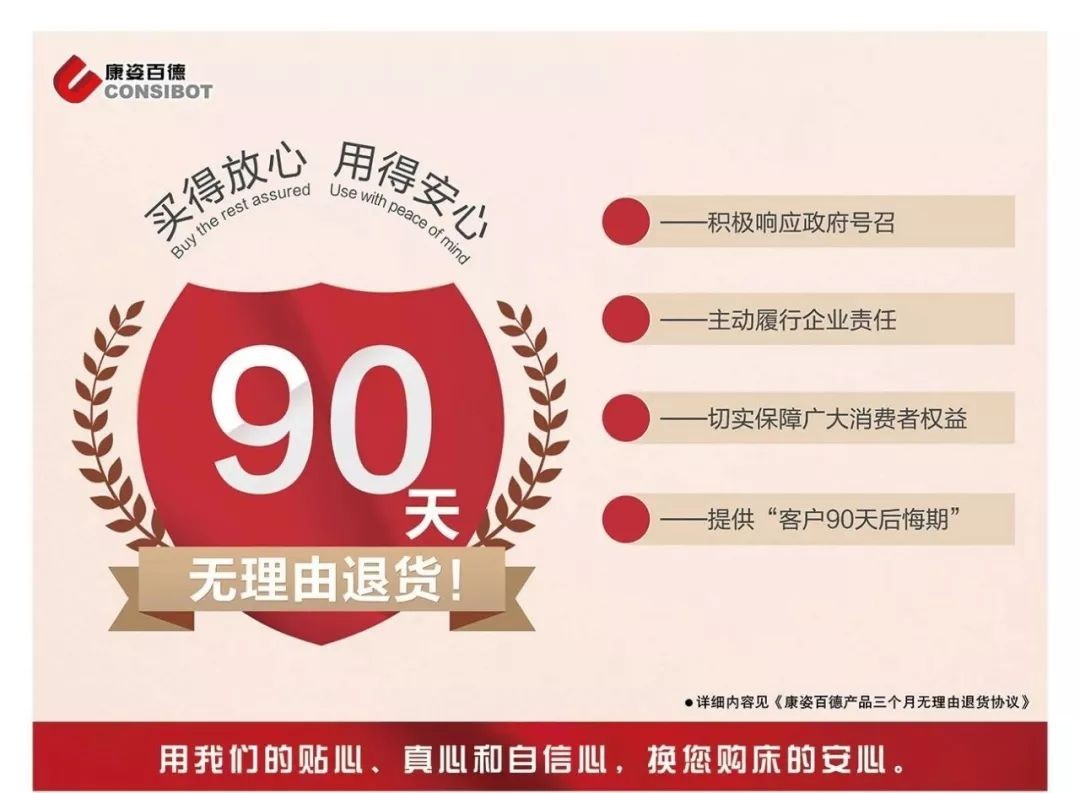 1.三個月無理由退貨,讓康姿百德的產(chǎn)品質(zhì)量和服務(wù)質(zhì)量,得到了進一步的提高。