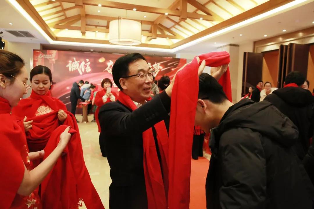 家人們滿懷喜悅的心情,昂首闊步走在會場入口的紅毯上。不得不說,紅毯秀是最能凸顯家人們氣場的環(huán)節(jié),此刻,他們就是最耀眼的明星。“紅圍巾,福氣臨”,公司領(lǐng)導(dǎo)們親自為家人們佩戴上了紅圍巾,愿家人們來年更紅火!家人們紛紛在簽名墻上留下了自己的簽名,這不僅有對2019年的感觸,更有對2020年的期待。