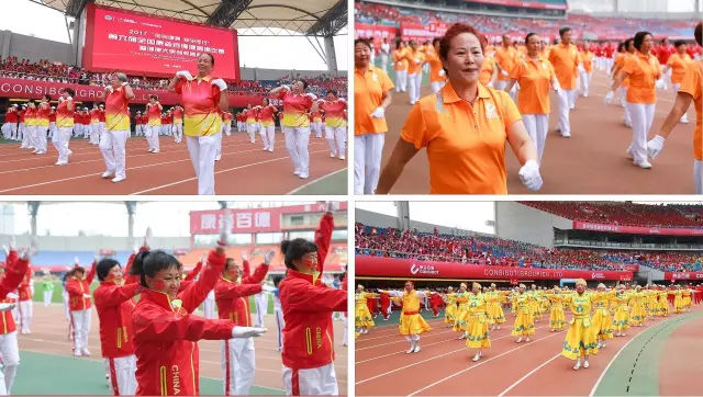 在賽場上,參賽隊員們或身著簡約時尚的運動服,或身著絢麗多彩的民族服飾,在環(huán)形的奧體中心舞動成了一道流動風景,渲染出一派盛世歡歌的壯美景象。