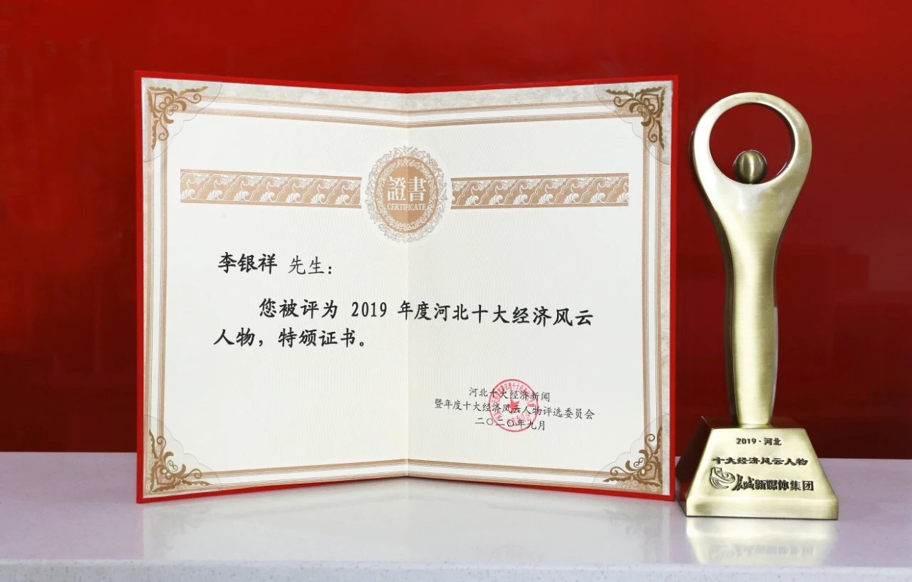 “河北十大經(jīng)濟風云人物”榮譽證書和獎杯