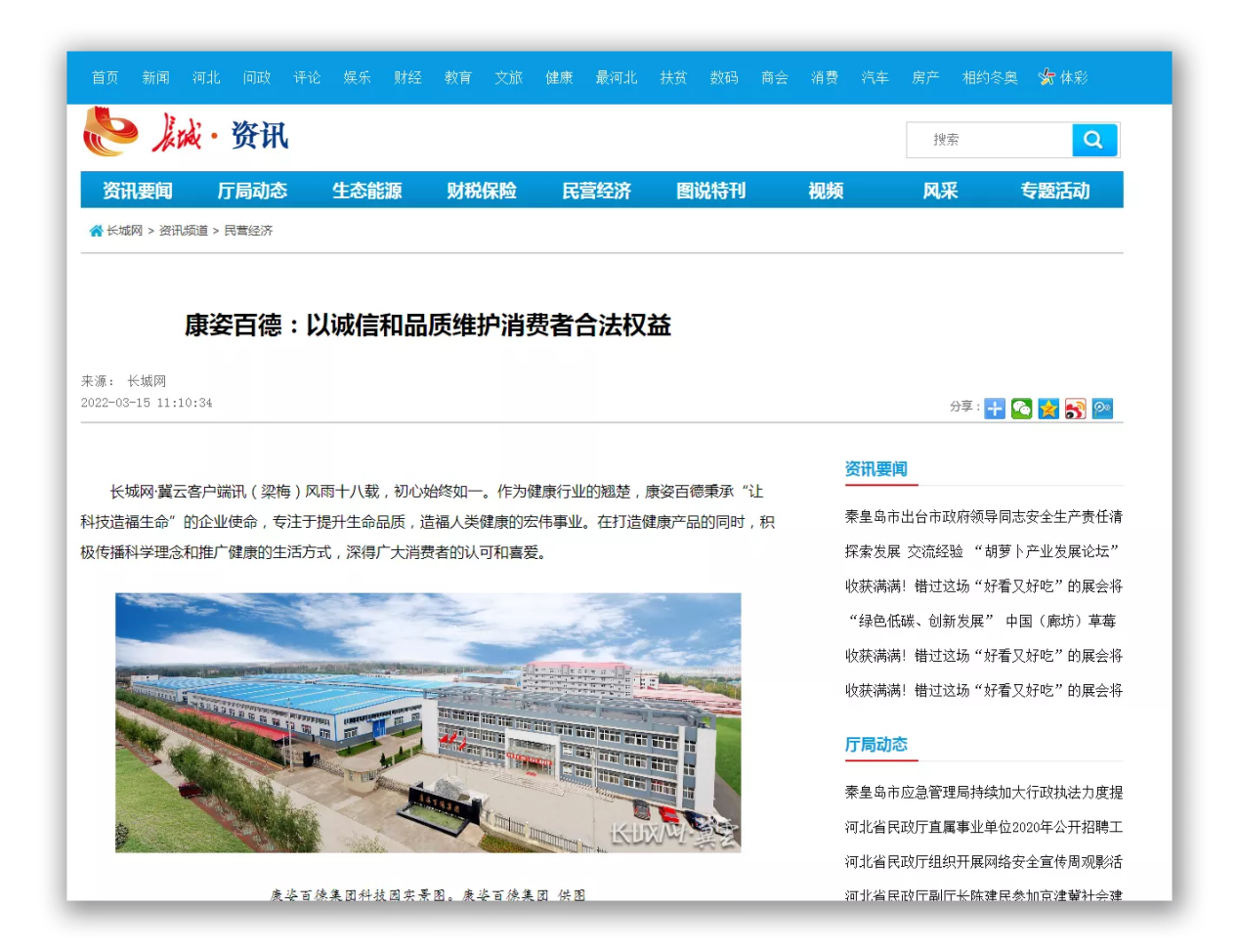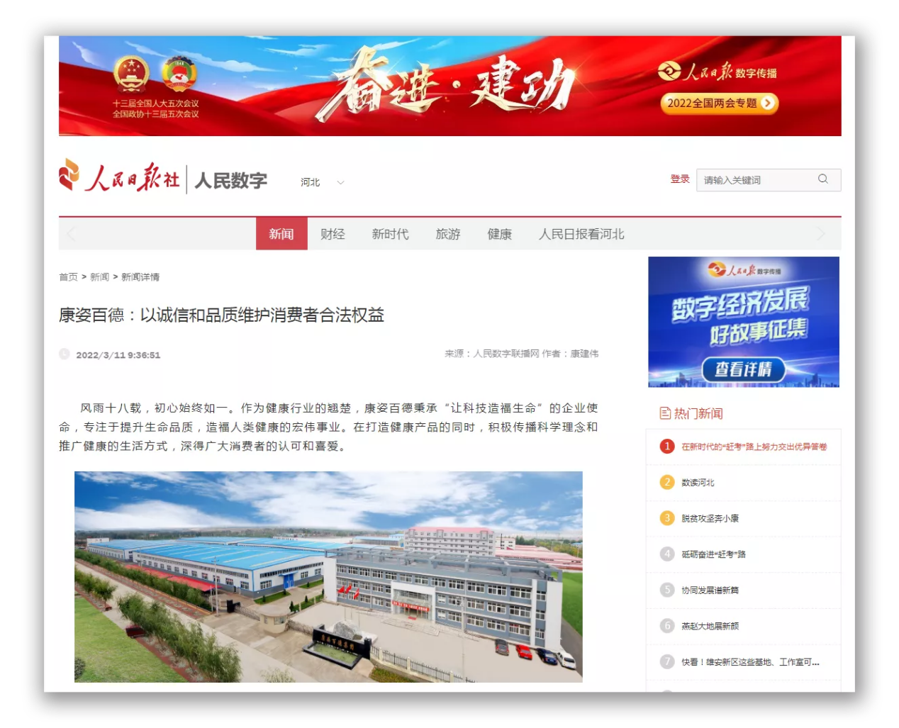 同時(shí),人民日?qǐng)?bào)社數(shù)字網(wǎng)、長(zhǎng)城網(wǎng)冀云客戶端等多家媒體也對(duì)康姿百德進(jìn)行了全方位報(bào)道。