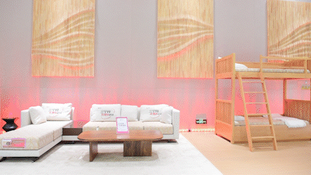 科技展廳的產(chǎn)品展示區(qū),以“科技感”與“舒適睡眠”為設(shè)計導(dǎo)向,圍繞“溫暖”“家”“科技”幾個核心元素,實現(xiàn)了科技元素與家居生活的有機結(jié)合,構(gòu)建一個家庭場景式的沉浸空間,一個有溫度的展示環(huán)境。