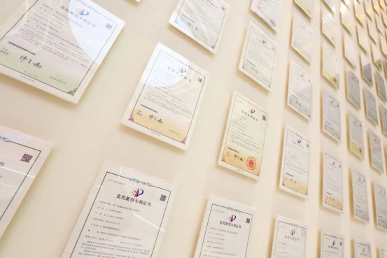 整面的專利墻,收錄了李銀祥董事長領(lǐng)導(dǎo)的旗下集團百余項專利。這面墻沒有過多的裝飾,卻足以彰顯李銀祥董事長對科研創(chuàng)新的重視和投入??底税俚略诶钽y祥董事長的領(lǐng)導(dǎo)下,自成立以來就高度重視在科研方面的投入,不斷加大科研投入力度,致力于提升產(chǎn)品和服務(wù)質(zhì)量。
