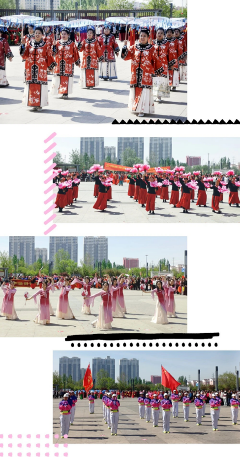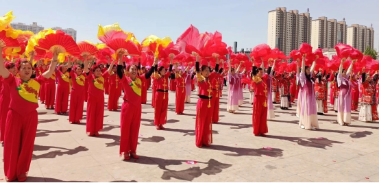 歌舞展演活動在集體舞《母親是中華》中拉開序幕,昂揚的旋律與優(yōu)美的舞姿交織成一幅動人的畫面,為觀眾帶來了一場震撼心靈的視聽盛宴。之后,廣場舞、扇子舞、民族舞蹈等節(jié)目輪番上陣、異彩紛呈。參演者們身著艷麗的服裝,各個精神飽滿,隨著動感的音樂,踏著輕快的節(jié)拍,動作標準優(yōu)美,隊列整齊有序,彰顯了健康活力,傳遞著運動的魅力。