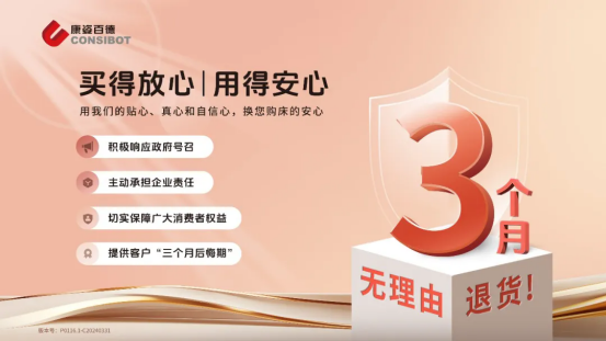 “三個月無理由退貨”承諾遠(yuǎn)高于《消費(fèi)者權(quán)益保護(hù)法》要求的七日內(nèi)無理由退貨,也大大增加了企業(yè)的經(jīng)營成本和難度,但康姿百德仍堅持將消費(fèi)者的權(quán)益放在首要位置。這充分表明了企業(yè)對消費(fèi)者高度負(fù)責(zé)的態(tài)度,展現(xiàn)了康姿百德對產(chǎn)品和服務(wù)的自信。同時,在銷售產(chǎn)品的過程中,康姿百德更是主動與消費(fèi)者簽訂《三個月無理由退貨協(xié)議》,這一舉動也進(jìn)一步提升了廣大消費(fèi)者的安全感和滿意度。