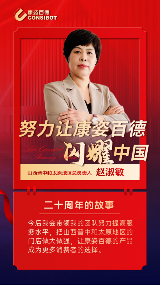 在康姿百德,有這樣一位榜樣人物。深耕大健康行業(yè)這些年,她始終心懷敬業(yè)精神,篤行致遠(yuǎn)。憑借著一腔熱情、勤奮努力、堅(jiān)持不懈和開(kāi)拓創(chuàng)新,得到了廣大消費(fèi)者的認(rèn)可和信賴(lài),她就是康姿百德山西晉中和太原地區(qū)總負(fù)責(zé)人——趙淑敏。趙淑敏經(jīng)理自2009年加入康姿百德已有15年的時(shí)間,親眼見(jiàn)證了康姿百德的飛速發(fā)展。