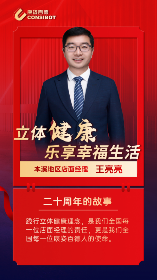 在康姿百德工作10年來,他憑借著對大健康事業(yè)的強烈責任感和滿腔熱情,把自己的理想和抱負傾注在所熱愛的事業(yè)上,不僅為客戶提高優(yōu)質的產品和服務,傳遞健康的生活理念,還積極踐行著康姿百德“立體健康”的理念,贏得了本溪地區(qū)客戶的信任和認可。他就是本溪地區(qū)店面經理王亮亮。