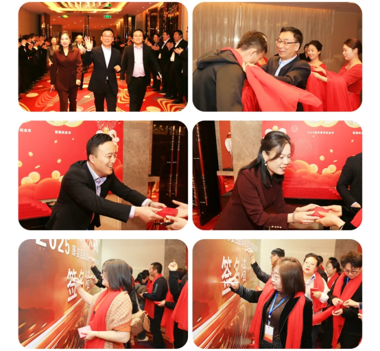 在璀璨燈光下,銷售精英們臉上綻放著溫暖的笑容。踏著紅毯,家人們意氣風(fēng)發(fā)地邁向星光大道。公司領(lǐng)導(dǎo)將精心準(zhǔn)備的伴手禮送到每個參會家人的手里,并給家人們戴上象征“鴻運當(dāng)頭”的紅絲巾。簽名墻上龍飛鳳舞的每一筆都飽含豪情,攝影師鏡頭定格的每個笑臉都凝結(jié)著團(tuán)隊榮耀的瞬間。
