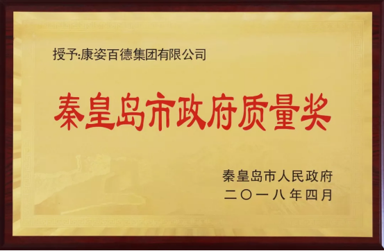 康姿百德在質(zhì)量水平、創(chuàng)新能力、品牌影響力以及效益等方面均取得突出成績(jī)并達(dá)到國內(nèi)先進(jìn)水平,榮獲秦皇島市政府質(zhì)量獎(jiǎng)(組織獎(jiǎng)),董事長(zhǎng)李銀祥榮獲秦皇島市政府質(zhì)量獎(jiǎng)(個(gè)人獎(jiǎng))。