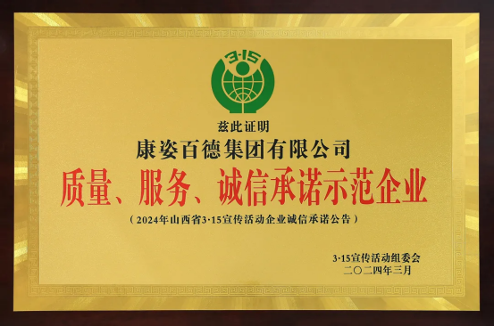 山西315宣傳活動(dòng)組委會(huì)為樹立行業(yè)典范,引導(dǎo)其他企業(yè)學(xué)習(xí)其質(zhì)量管理、服務(wù)規(guī)范及社會(huì)責(zé)任實(shí)踐,形成“以點(diǎn)帶面”的示范效應(yīng),設(shè)置了“質(zhì)量 服務(wù) 誠信承諾示范企業(yè)”榮譽(yù)稱號(hào)。康姿百德以高質(zhì)量的產(chǎn)品和優(yōu)異的服務(wù)質(zhì)量,成功獲獎(jiǎng)。
