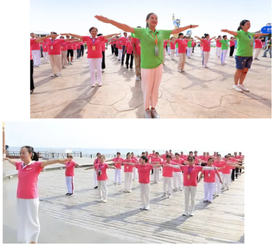 活動伊始,來自吉林延邊、吉林長春、黑龍江哈爾濱、黑龍江牡丹江、遼寧沈陽、江西九江、山西忻州、安徽阜陽、浙江寧波、河北承德、湖北隨州、湖南益陽、湖南郴州、四川廣元、四川綿陽、山西晉中、河北石家莊、內(nèi)蒙古呼和浩特、黑龍江大慶、湖北武漢、四川達(dá)州、湖北黃岡、湖北廣水、遼寧盤錦、天津、湖南湘潭、四川成都、云南昆明等地的健身操愛好者們齊聚一堂,他們帶著對健身的熱愛、對健康的追求,共同點燃了這場全民健身盛宴的第一把火,讓北戴河與山海關(guān)的每一寸空氣都彌漫著激情與活力。