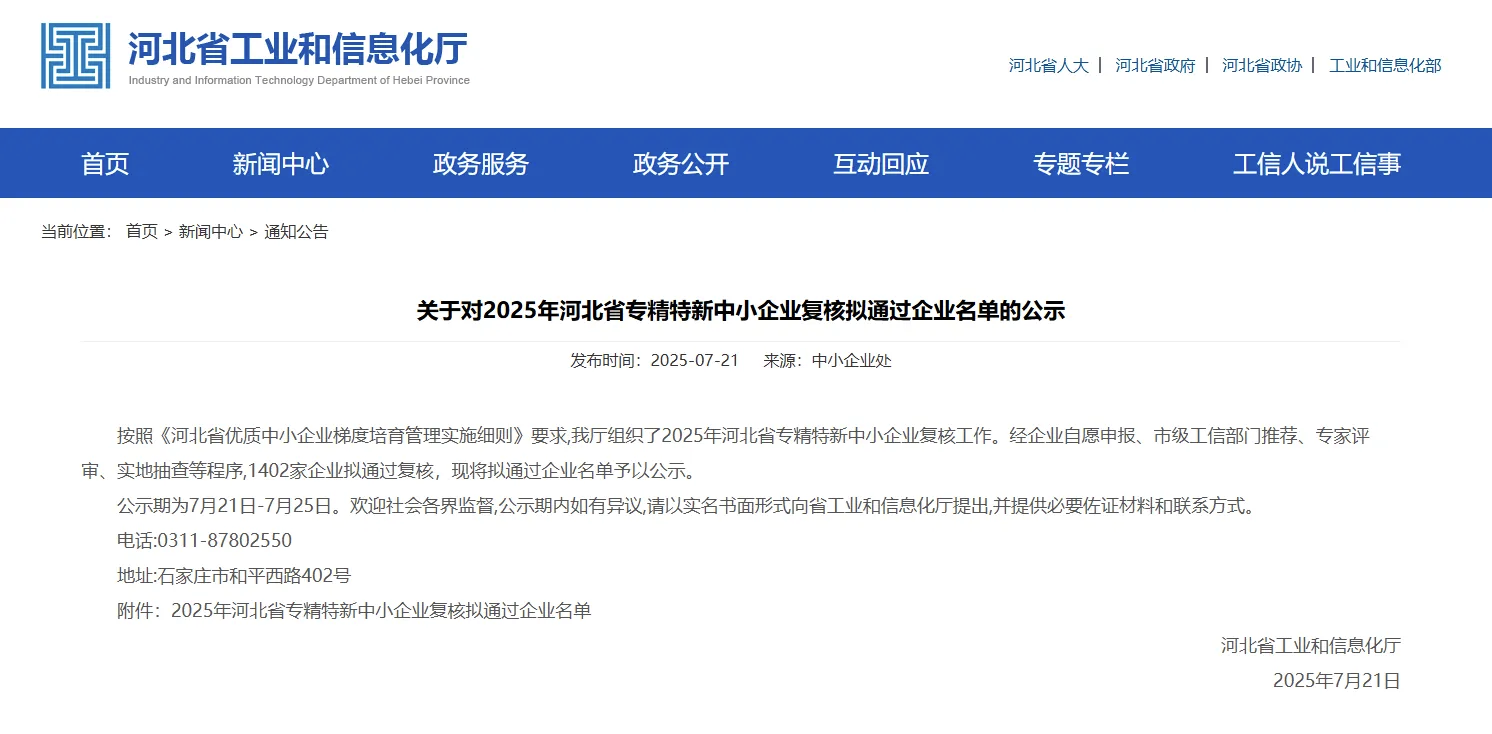 河北省工業(yè)和信息化廳官網(wǎng)截圖