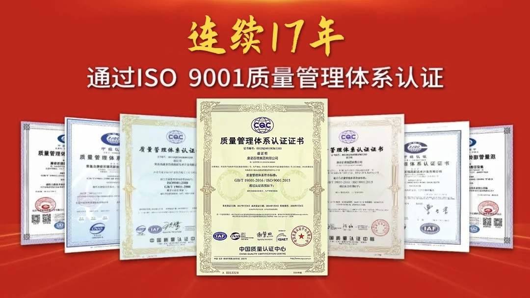 康姿百德始終將產(chǎn)品質(zhì)量視為企業(yè)生命線,嚴(yán)格執(zhí)行高標(biāo)準(zhǔn)的質(zhì)量管理體系。憑借過硬的質(zhì)量管理實力、完善的質(zhì)量管理體系、高效精細(xì)化的管理模式,康姿百德已連續(xù)17年通過ISO 9001質(zhì)量管理體系的認(rèn)證和延續(xù)認(rèn)證。
